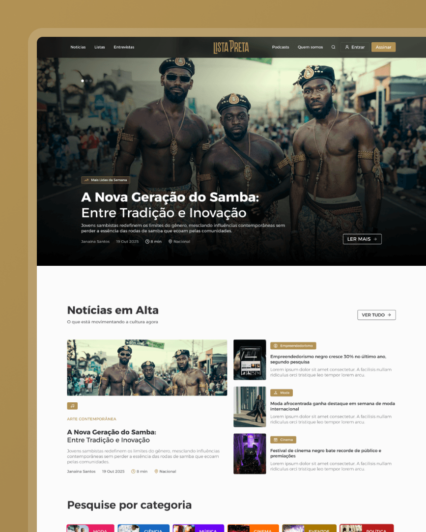 A Lista Preta é um portal de notícias focado na comunidade negra e em pautas de representatividade.